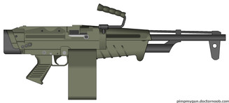 Recreated ANOTHER XCOM gun in PMG. This is the LMG (Light Machine Gun) for Heavy Weapons units only.The ammo belt is an extra, this never appeared on the gun in the actual game.