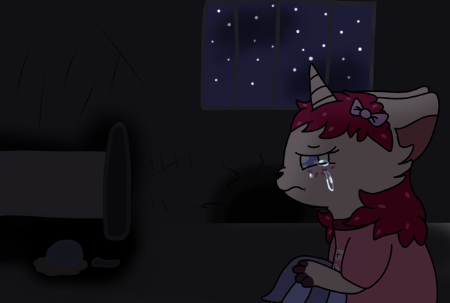 I walked around the nook, the wood feeling cold beneath my paws as cries could be heard. Soft sniffles... I shouldn't have been able to hear until it as my magic spurred out of control with a bustling loud... HIC!...
