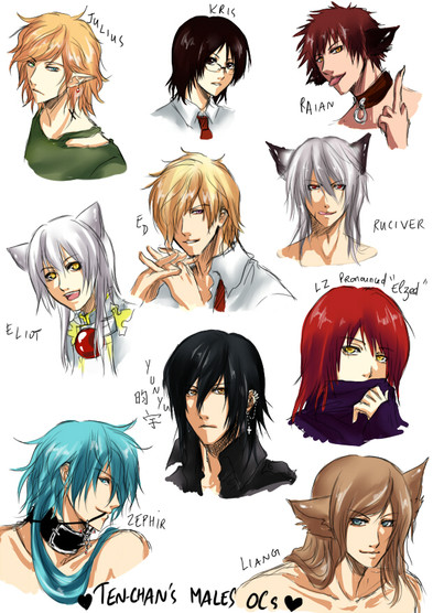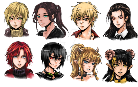 >W> And next 4 boys are done!! XD Also, did want to say, this is a tad lazy on head shots >>' I am using the same lineart and face for all of them... Just mainly trying to show hairstyles, eye colors and skin color XD Can always explain how they look if someone asks. Anyhow, heres the next 4