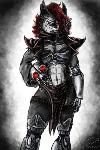 #badass #skull #robot #digitalart #anthropomorphic #assassin #death #furryfemale #scars #war #wasteland #wolf #wolfcanine