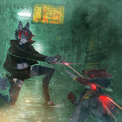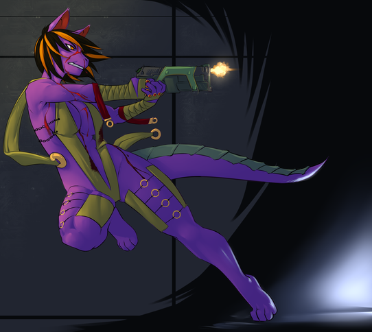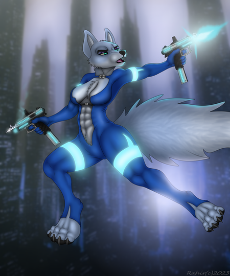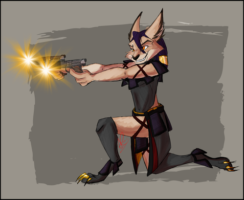 #acrobatics #anthropomorphic #fight #gun #gunslingergirl #shooting #wasteland #wolfcharacter #wolffurry