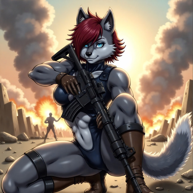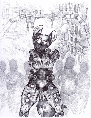 #robot #welding #anthropomorphic #damaged #femalewolf #machine #wasteland #wolfcharacter