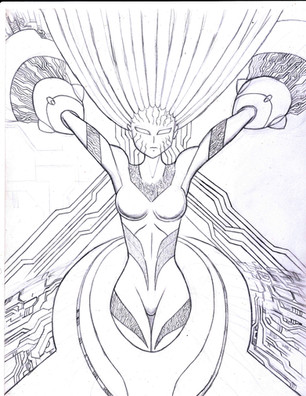 This is a very rough sketch for a new character i designed for my story Between the Stars! This is a drawing of The Oracle, a very wise woman at the heart of the Galaxy. This picture was highly inspired by the work of the amazing and beautiful Staceytron! please comment and critique!Related content