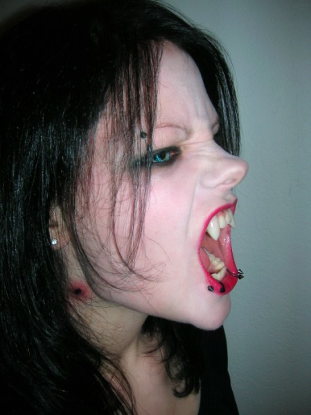 But if you want to get all technical, they are far more practical in this location, and they have been shown on these teeth in popular film as well... In the movie The Lost Boys for example.