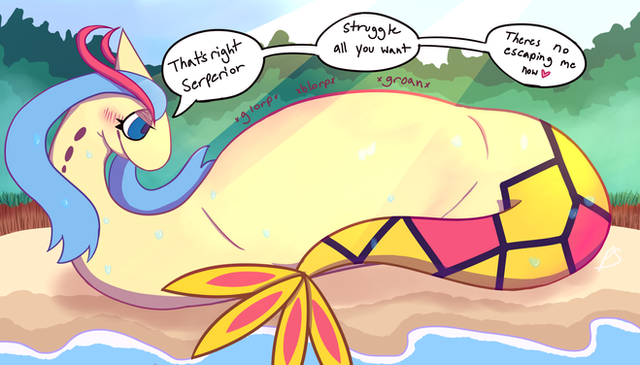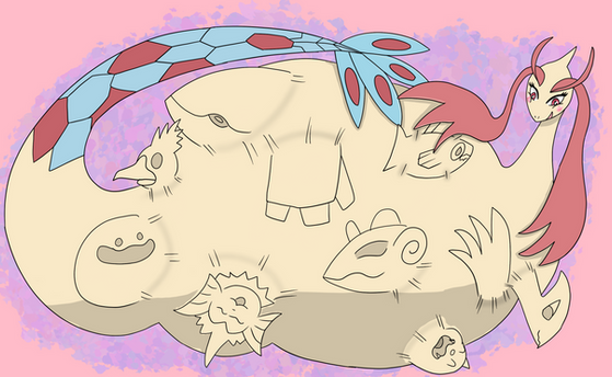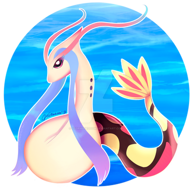Someone needs their beauty snack.ΒMilotic is pretty tops when it comes to girl-mons (or whatever you call them). She's got that cute look while having a pretty unique design too. Also, the idea of a serpentine creature wrapping around me and pressing their rumbling "belly" against my head is... intoxicating.
