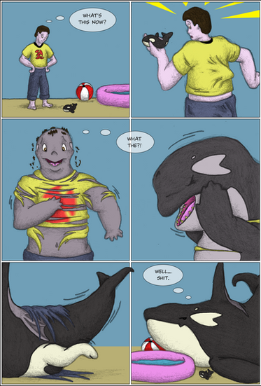 i really like the idea with the transforming from human to an orca. and i really like your draw-style. it is very clear and detailed.