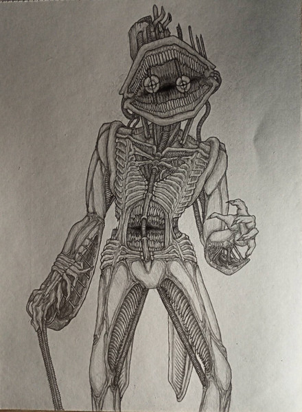 "I want to play a game...."Xenomorph hybrid of Jigsaw(SAW series)and a xenomorph.I have no idea how this would happen but still it's cool.