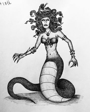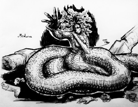 #claws #greekmyth #medusa #monster #mythology #snake #teeth #wings #gorgon #greekmythology #mythicalcreature #pencildrawing #traditionalart #medusagorgon