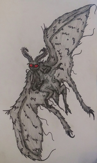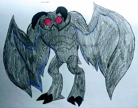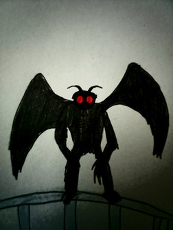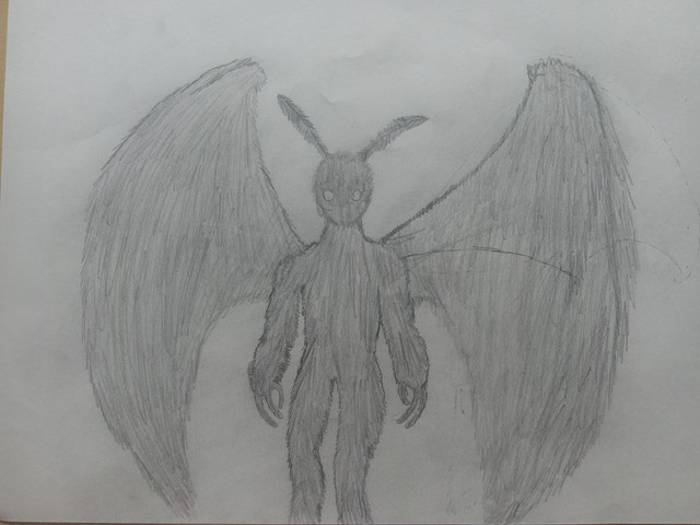 Its supposed to me alittle blurry guys.A creature from West Virginia folklore, the mothman is described as a man-like figure with large wings that are reported to be 10ft.Its natural pigment is black, helping it blend in with the black night.It is know to have eyes that glow red.