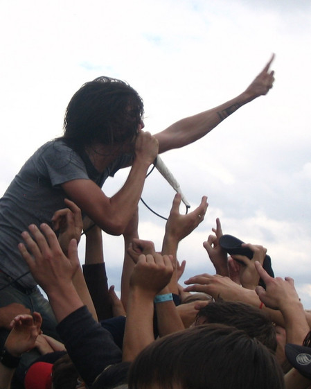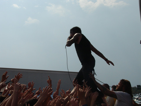 Anthony Green of Circa Survive singing in the crowd at warp tour in buffalo 8/10/07Related content