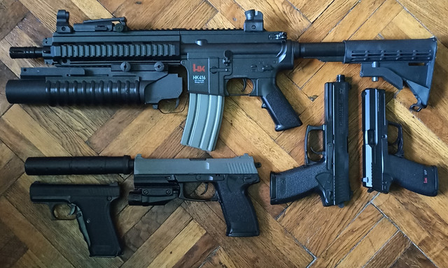 Also, a couple correction in the weapon list, the left most pistol is not a Glock, it is a H&K USP, the second pistol is a 1911, possibly a Hi-capa.