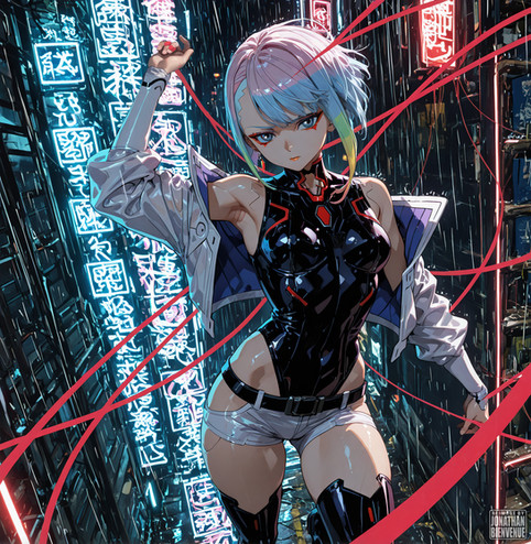 #digitalart #animegirl #cyberpunk #scifi #originalcharacter #android #androidgirl #badass #bodysuit #cityscape #curvy #cyborg #dystopian #futurecity #futuristic #lowangle #neonlights #oc #paleskin #redeyes #redhair #streetwear #neoncity #thickthighs #darkvibes #techwear #android_girl