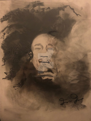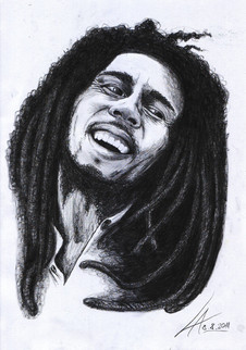 We jammin'.Man, it took me a while to scan this one in. The original is 18"x24". The screenshot is kinda ikky. But if u click on it, it's a better quality pic. I drew my dear friend Bob Marley using a piece of charcoal. Comments, mon.