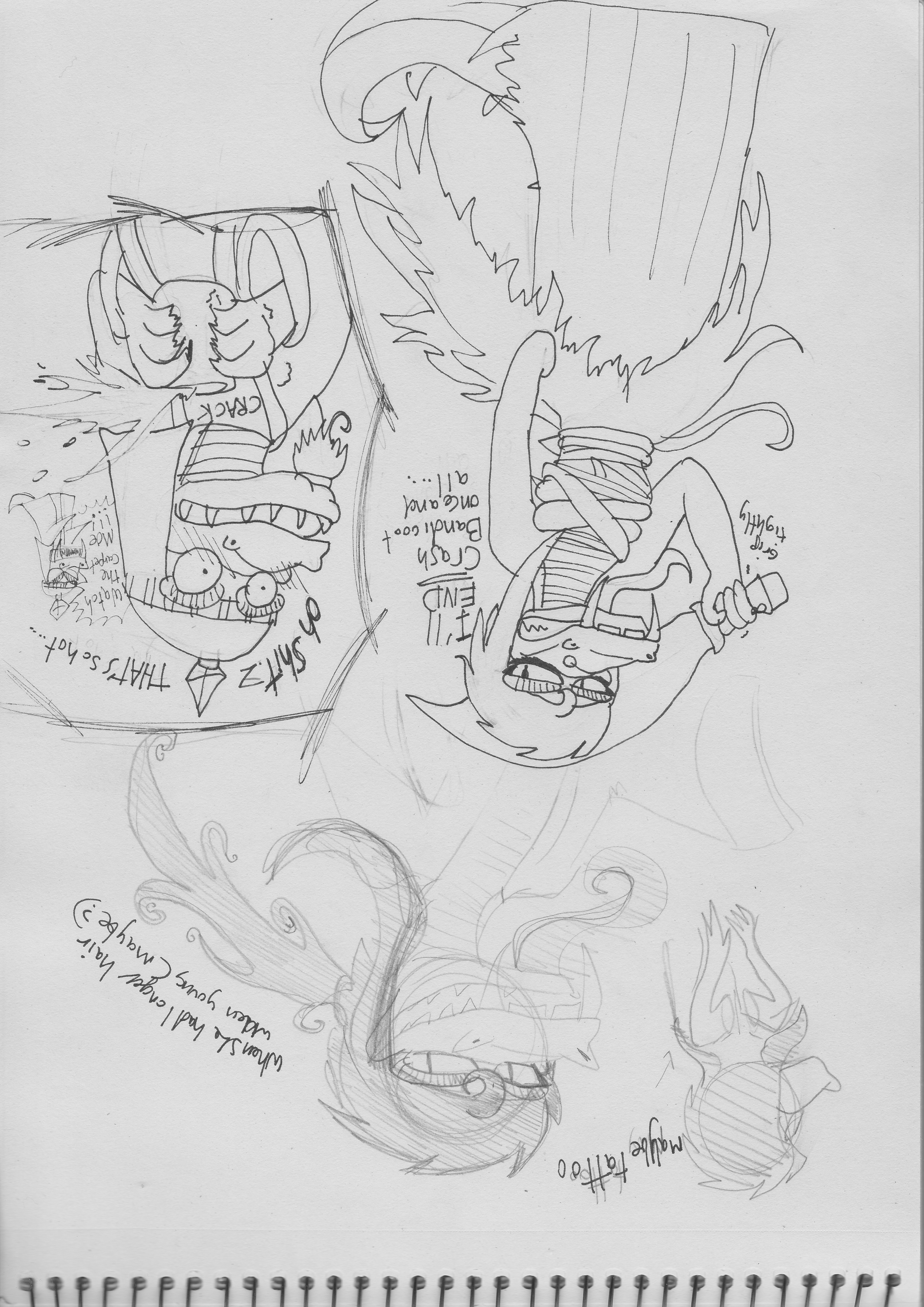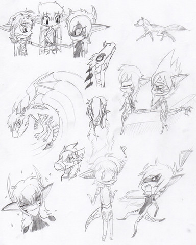 lol weird.I drew dark kicking his shoes off, looked back at it WITHIN A MATTER OF ABOUT 3 MINS and forgot HOW i had drawn it- with actually one leg flailing to get shoe off and the other leg behind kicking one off. I misconstrued this as just both legs flailing and assumed he had endless shoes.