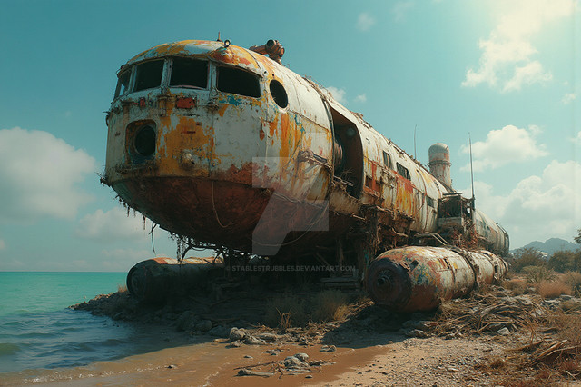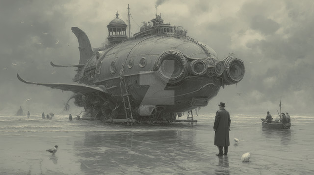 #ai #beached #submarine #aiart #dreamup #beach #steampunk