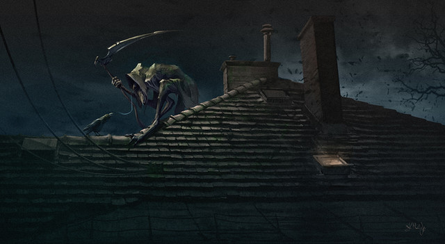 Run little red riding hood, before the big bad wolf gets ya. Though by what we can vaguely see, she's not exactly little. Nothing better than darkening a children's fairy tale huh? This really is good, especially the sun on the wolf's back.