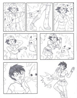 For me, it helps knowing what the establishing beginning colors are and what they will eventually end up being after the transition is complete. Ash's clothing and the way he looks has not changed a great deal since he was created, I could almost see the colors in the black and white drawing before I added the colors. The same was true for Ashley's dress and her hair. Choosing different colors than the series canon simply would not do. The drawing becomes more familiar to the fans of pokemon when the true colors are brought to the surface of the art. That, and Ashley looks really cute in her dress.