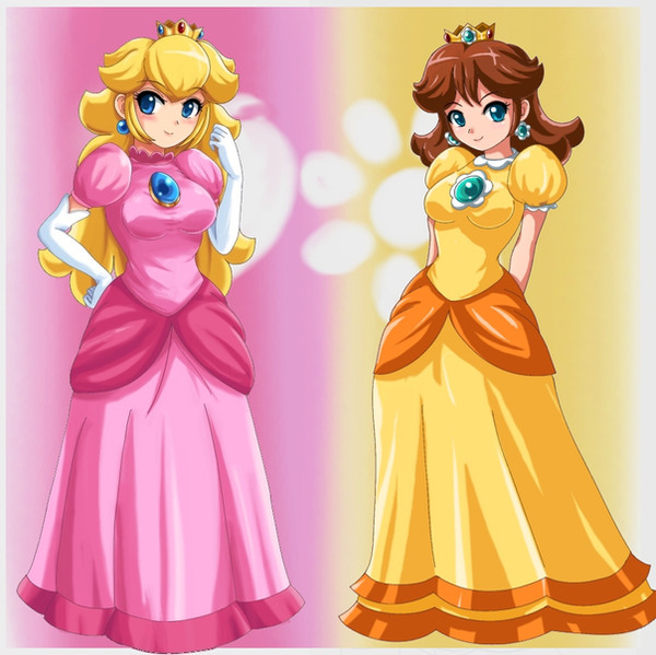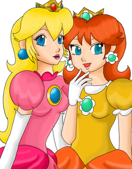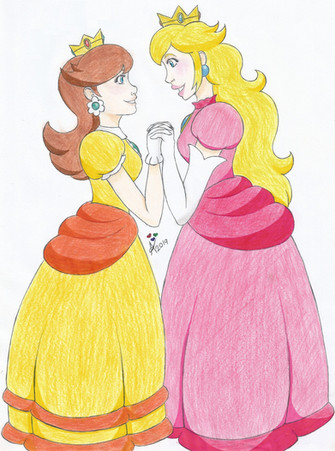 Princess Daisy and Princess Peach dressing up as the yellow and pink rangers! My roommate and I cosplay Peach and Daisy and next year we are cosplaying the pink and yellow rangers...well, we made the connection that I was yellow for both and she was pink and I decided it needed to be drawn, lol