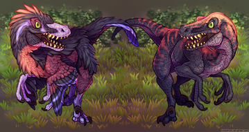 This young mated pair of deinonychus (deinonychuses? idk) have found something interesting they want to screech at. Good for them. Not so good for whatever poor fellow is off screen.