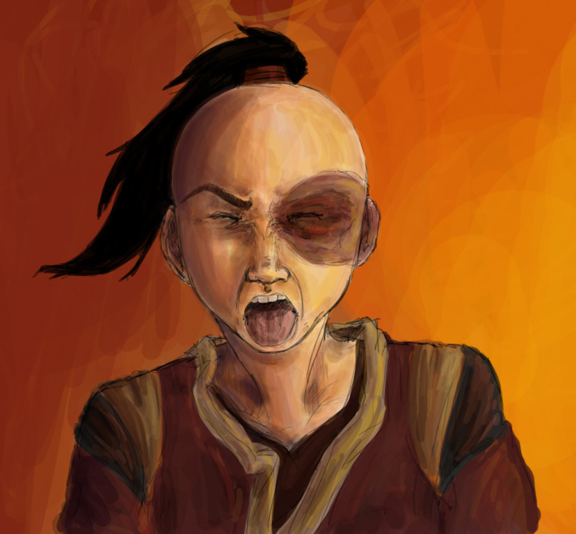 You have perfectly captured the essence of Jet. The lighting change, the coloring, the soaked clothing, his expression, it's all great. But what really makes him stand out is his eyes. I can see his raw, passionate, burning hatred for Sokka and Katara. I can see the slightly homicidal gleam in his eye. And I am shrinking back from the computer.
