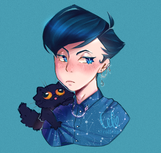 JAjajajaja yes yes,Β I'm glad you like it, your OC is very cute! *O*!!! a lot of Β blue!