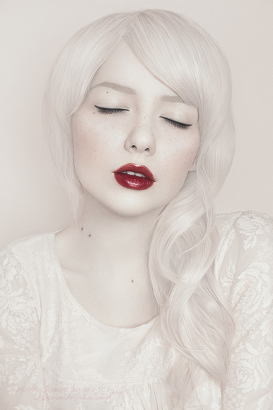 #eyes #fringe #hair #lilac #makeup #pale #pose #purple #skin #white
