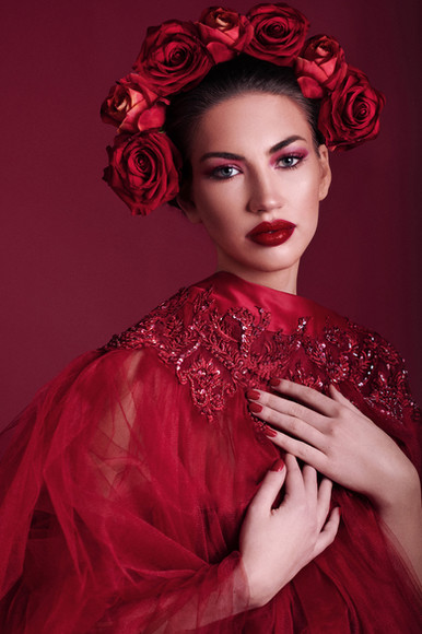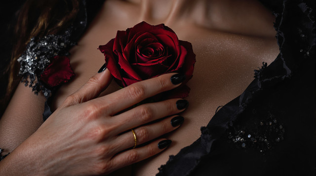#dress #hand #lace #nails #pose #red #rose
