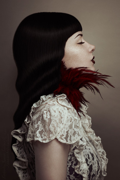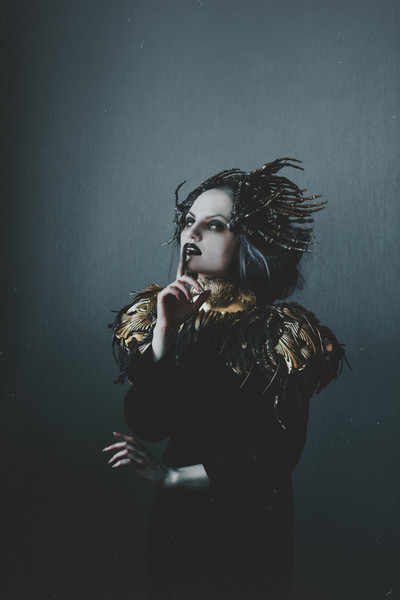 #black #dress #feathers #green #nails #pose #rose #roses