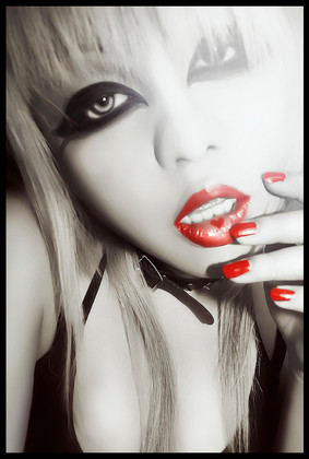 In my opinion, the model has very nice, full lips, so it was very clever to add a big pop of color to them so that the viewer would notice them first. The eyes are beatiful, and her hair looked smooth and silky. I love it!