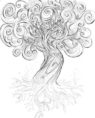 But this is a really interesting looking tree and I love drawing tree leaves in a snail-shell circle style like that too!