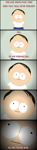.........I didn't know Butters could be like that........and the fact that he's using some of his normal vocabulary like 'Neat-o' just makes it even freakier. It's scary when somebody says that to your face with a threatening tone. It's WAY worse when they can say it in a happy cheery voice like they think it's as fun as getting ice cream with a friend.
