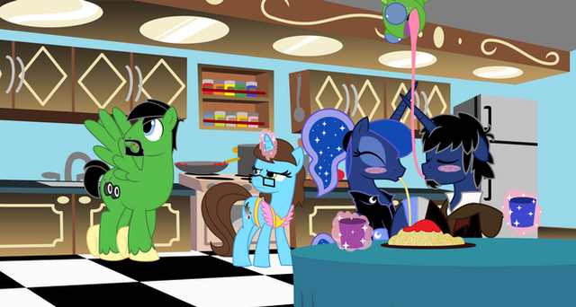 Littlepip and Homage enjoying an exquisite dinner at Gourmare's.Didn't have a coherent idea to how to fill up a page with various dinner shenanigans. But this idea had stuck out long before I even got to this point. To be honest, I hadn't actually drawn a thing comic related since February and the previous page due to an outside obligation (I had just started again in late May, and thankfully I can still continue to draw the characters acceptably well). I maintain my plans for continuing the comic, even though my primary objective of reuniting Littlepip back with her friends has already been accomplished, but there's a few stories I'd still like to tell.