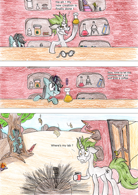 poor littlepip looks like she's been left standed/abandoned in a room with only a small box. Although i'm reasonably sure it's part of Homage's and King-Koder's plan