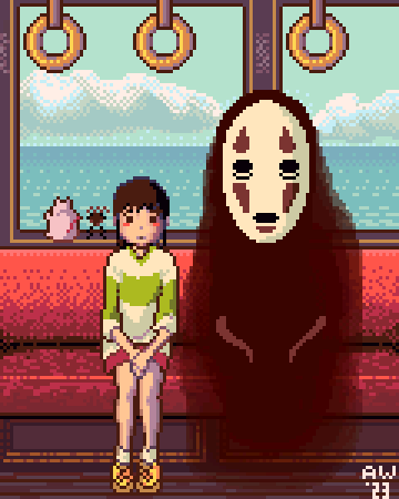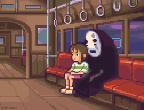 #animated #cute #gif #kawaii #noface #pixel #pixelart #ride #scrolling #sen #stamp #studio #train #art #chihiro #ghibli #miyazaki #spiritedaway #studioghibli