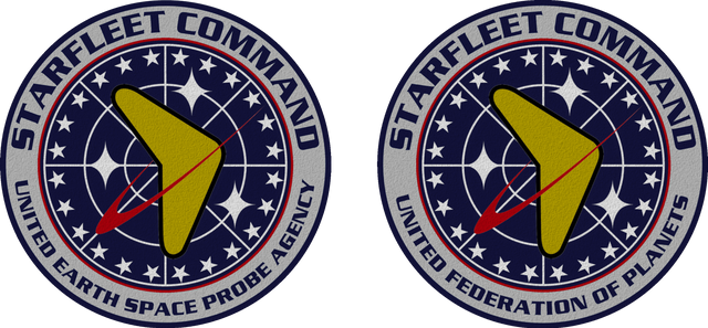 Was trying to make a mission patch for my Start Trek: Online ship and ended up making 2 simi-versions of a take on the Starfleet Command Insignia from the first show. Odd how that happens...Fonts: SF Movie Poster, Jefferies