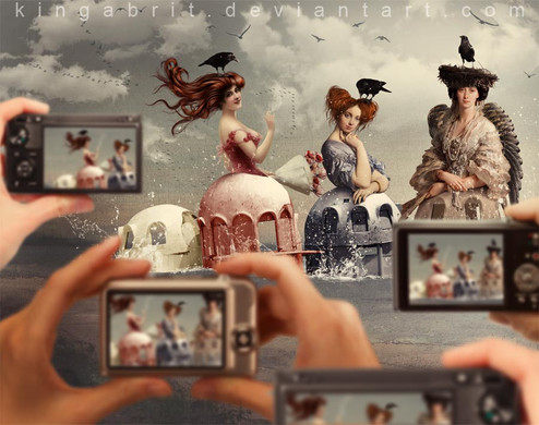 The lady and the foreground are from Practical Photoshop magazine's December issue (Resource files on CD), the other images are my photos and purchased/licensed stock. Some stocks are by Irene Alekseeva (not active provider any more).