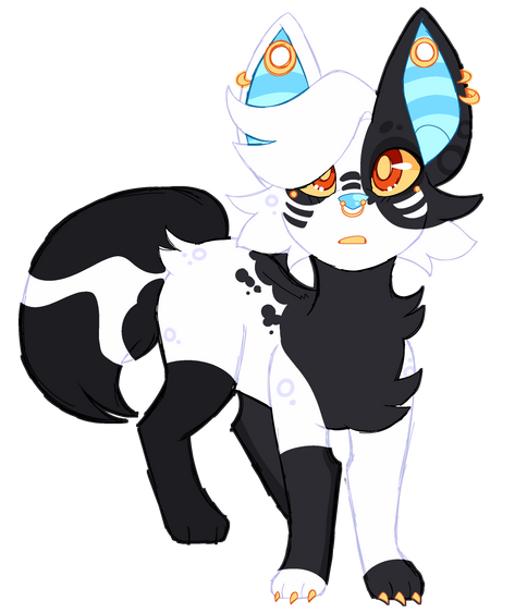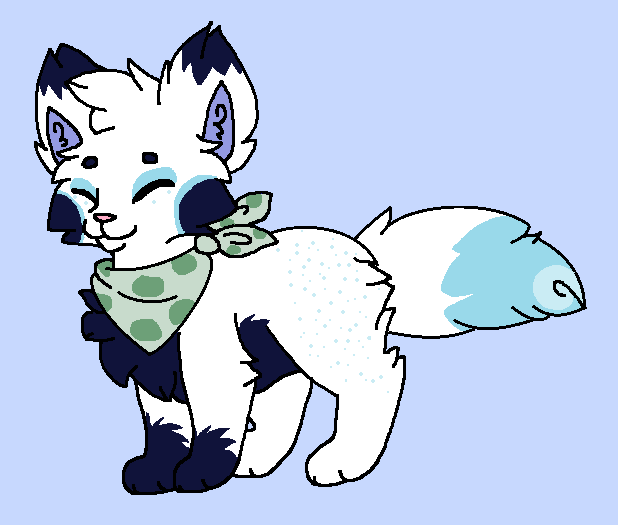 Design notes: She loves starry patterns, and often has one or more stars clipped onto her scarf, the blue shooting star being the most common. Her fur is very thick and long, and although her tail is considered slightly shorter than average, it's very fluffy. She has an ahoge in her hair shaped slightly like an hourglass, and her hair falls down to her shoulders and is often slightly tangled.