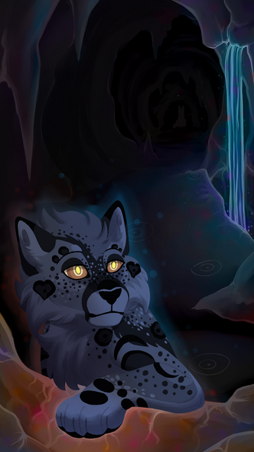 However, something strange occured.. As she began walking, certain sections of the cave began to glow. Softly at first, but getting stronger the further she pressed on. Until suddenly she was surrounded by bright blue sparks of neon, seeping from between cracks in the rocks. It was a phenomonon like none she'd ever seen. Pulsing and glowing, it was warm, and yet held a slight chill. Jaw somewhat agape, her eyes flicked from place to place. This... This was unreal. She believed in faeries and spirits, but this? Drawing close to one of the glowing lines she felt a small tingle. This was unbelievable. As beautiful as this place was, she still needed to find a way out. Stepping towards one of the side caves, she stuck her head forward. But her nose has barely grazed the entrance before it felt like time was flying past her.