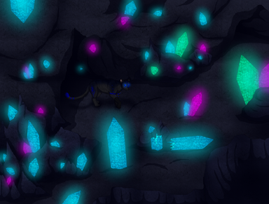 --Opening her eyes slowly, the apprentice found herself within darkness. Shocked and confused, she raised her head, trying to see. After a few moments, her eyes adjusted enough to see the cracks and fixtures of stone around her. Indigo eyes wide and concerned, she got on her feet, and began walking. She had to get back home; who knew how long she'd been down here?! How worried her family would be.. she must get to them as quickly as she could.