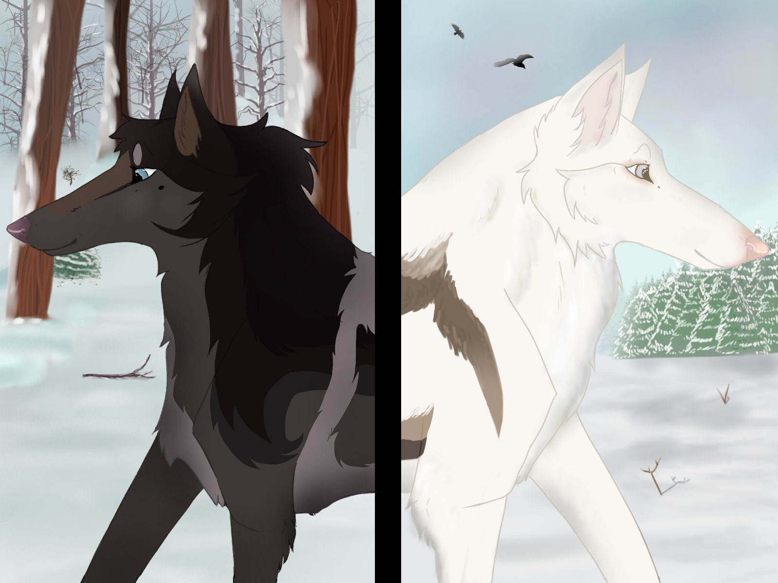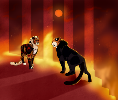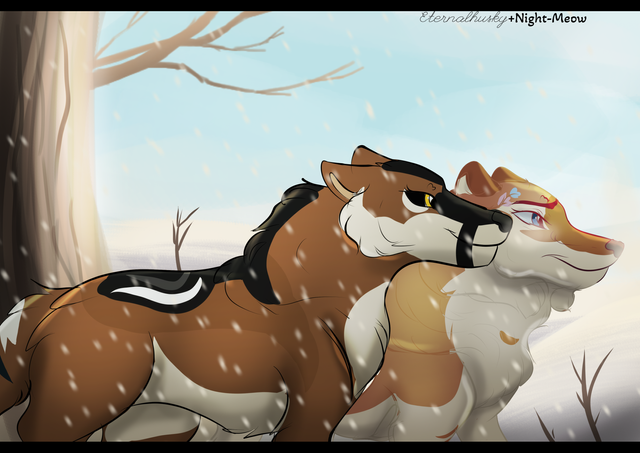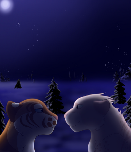 Scene from a rp with Sora!Summary: Its been a little while since Knox had joined the Ice Empire, and he hasn't really made an effort to get around and meet some cats. Sora has her own ideas, and decides to say hello to her new empire-mate. They go out for a little tour of the empire, and end up catching a rabbit for Rue's cubs. (Except Knox wants to eat it- ) The different opinions are clear, but it was a civilized meeting.