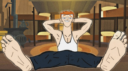 Nice work, seems like he's trying to get a good angel for the camera to film someone massaging his feet hehe