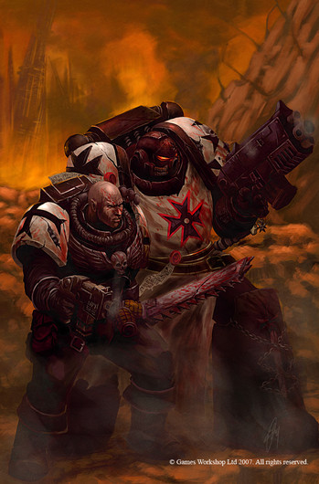 Another wonderful peice giving background for the Black Templars. I love the fact that you show the Neophyte and Initiate working closely together, as a good teacher and apprentice should. The chainsword seems a little on the less detailed side, as it's missing the powerplant for the chain drive, and the blade itself doesn't give the appearance of being chain-driven.