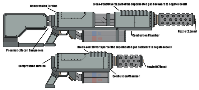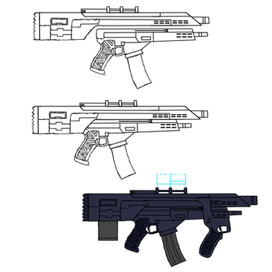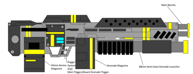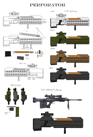 I forgot i finished this, lmao. Well, here is, hopefully the final take for my Musingar standard issue weapon. This is the Perforator, a massive coilgun. Its size is for higher penetration, alongside using accelerated grenade rounds as a way to improve grenade launcher attachments. Only something as massive and strong as a mechanical or superhuman being could wield one of these. With standard rounds that are basically caseless sniper bullets. Because of this, alongside lacking the chemicals for cased rounds, the Musingar main projectiles are easy to produce. The massive size also neccesitated an increasement on the size of the grip and its trigger. As such, even someone enough strong to wield it (as it is a coilgun, firing would be negligible), they would struggle to fire and hold such a weapon.Lesser coilguns, based on this design, have long replaced the standard firearms of humanity, having been considered likewise cheaper and more effective versions of the ancient gunpowder and firing chemicals of rifles. These ones do have the standard grenade launcher, as the accelerated kind was deemed too heavy for human forces to integrate for their rifles.