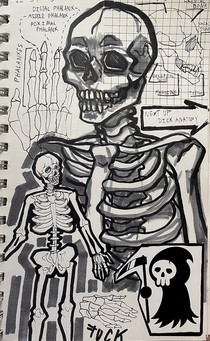 This was something I just got done doing in college.I was drawing out a skeleton model in our classroom, and I used an ink pen to draw it out. I started with pencil, but then I threw my pencil aside, and try to not make any mistakes with the ink.