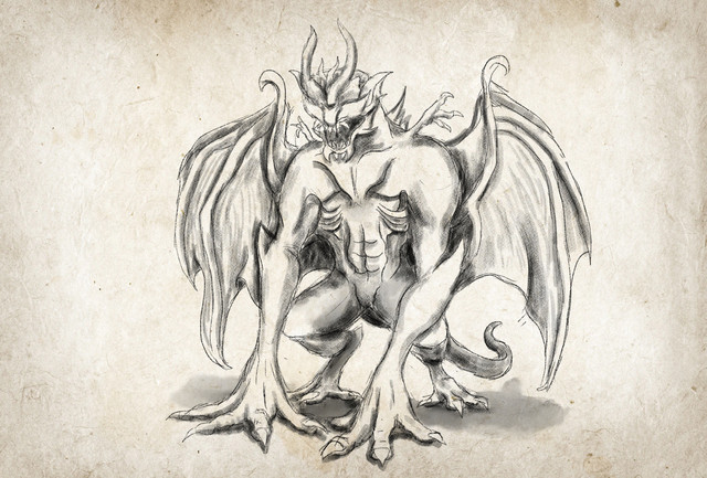 Monstrous winged humanoid defeated by Conan. I remade it after a couple of years.. The new version is more disfigured and asymetric than previous ones due to mutations ravaging its body. It also bears numerous scars as the last members of the race were cannibalistic and likely fought with each other."Then something swept down across the stars and struck the sward near him. Twisting about, he saw it—the winged one!