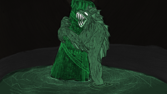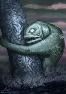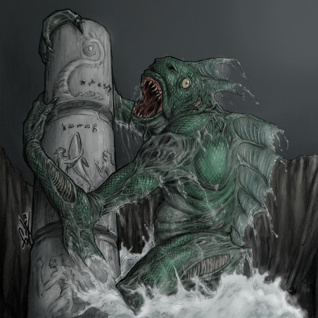 #amphibious #creature #cthulhu #dagon #deep #fish #lovecraft #monstrer #mythos #one #painting #monolith