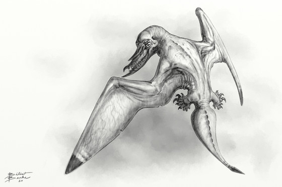 A very strange creature with a secondary pair of jaws where the hindlimbs should have been found. It uses the secondary jaws to grab the prey while on the flight. Perhaps a symbiote? Perhaps male and female individuals of the same species permamently fused like in some fishes? Perhaps during mating season the powerful maw will become a womb for incubation of the young?Related content
