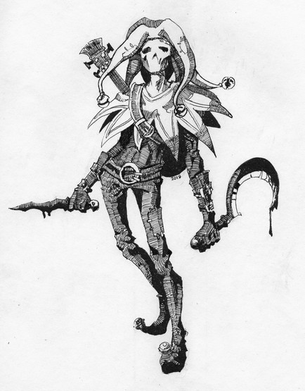 #boots #dagger #figure #fun #grin #hooded #insane #jester #laughter #mad #scissors #trickster #grinnus