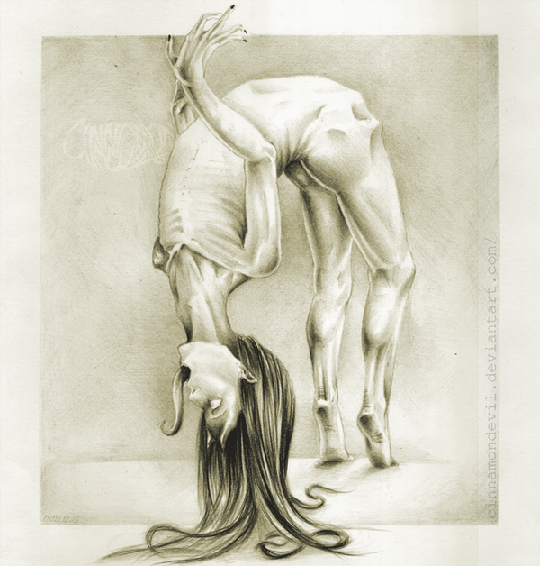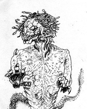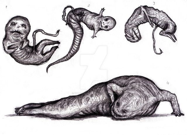 The weird hybrid entity that resides within the Labyrinth using its hind limbs to suspend itself from the walls.ΒEdited the face.