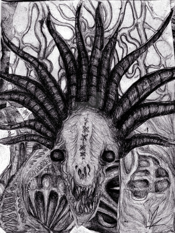 Haha, you should have drawn the walls and the eerie dark hall, but terrific nonetheless! A fine illustration of its hideous, fleshy mass! I always wondered just what the hell it engineered.